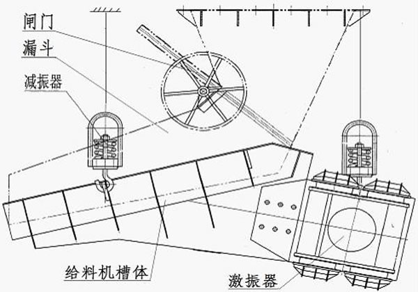 XZG振動放礦機通過懸吊裝置、安裝在料倉下部、通過相匹配的漏鬥組成一個給料(放礦)係統、同時根據要求漏鬥應配置閘門,便於調節物料流量及更換維修快猫AV成人版网址時關閉料倉用。